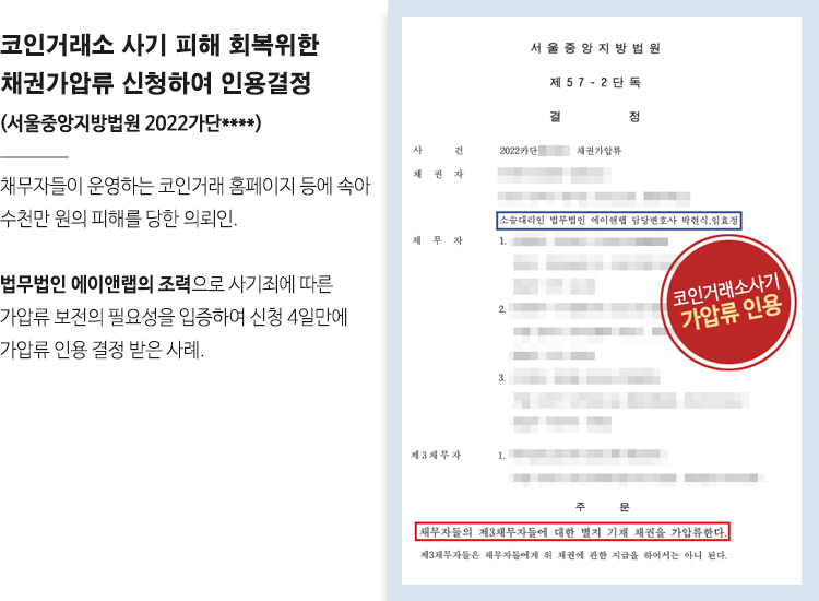코인거래소 사기 피해 회복위한 채권가압류 신청하여 인용 결정