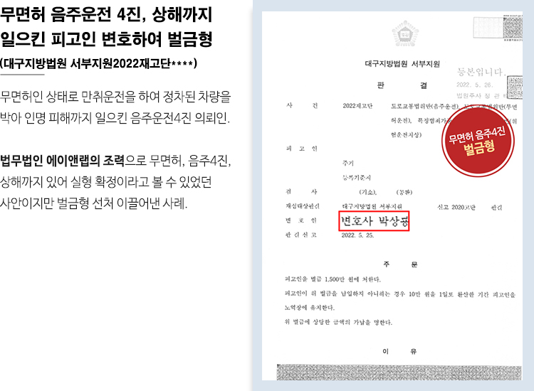 사건을 담당한 형사법 전문 조건명, 최근창 변호사는 사건 선임이 된 후 즉시 피해자 측과 연락하여 적정한 수준의 합의금으로 신속한 합의를 이끌었습니다.