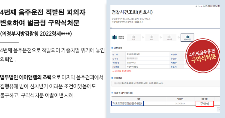 4번째 음주운전 적발된 피의자 변호하여 구약식 벌금형 처분 이끌어내