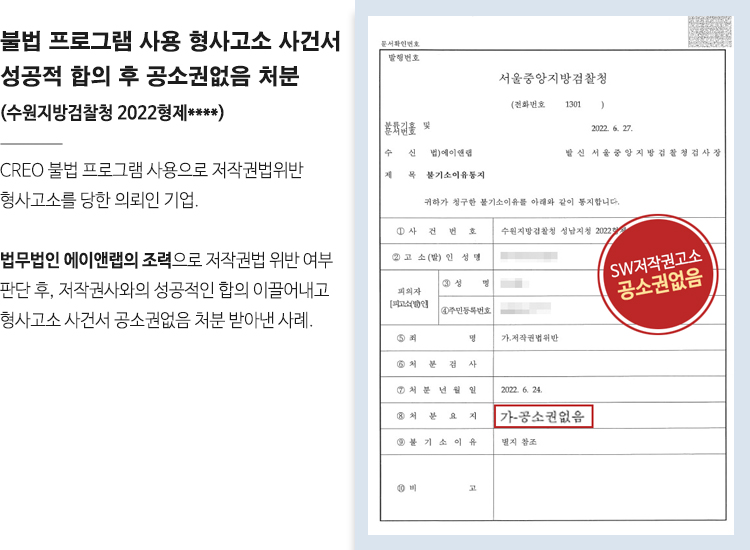CREO저작권 위반 형사고소 사건서 성공적인 합의하여 공소권없음 처분 이끌어내